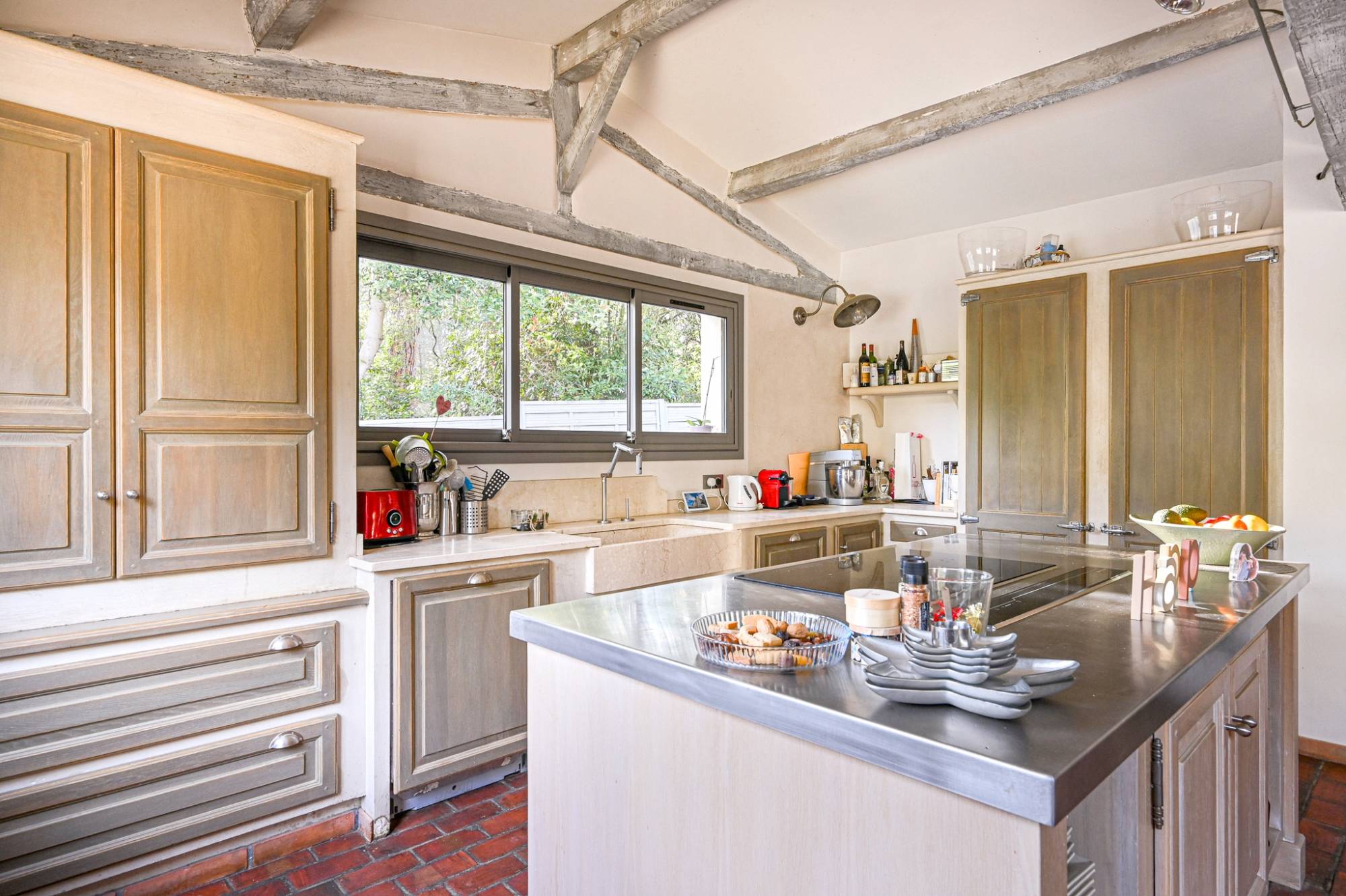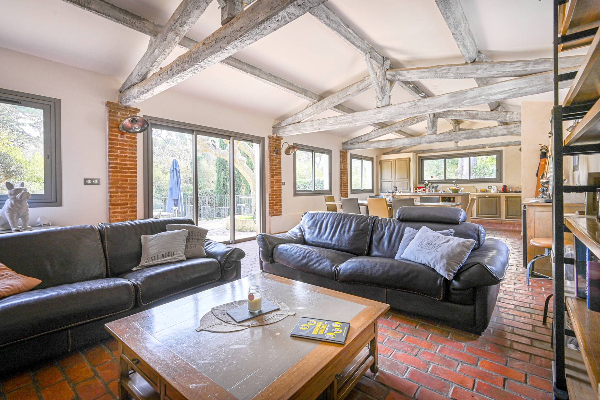 L'accès à la propriété est sécurisé. La parcelle, joliment arborée, s'étend sur une superficie de 6300 m², ce qui offre un bel espace extérieur. Elle accueille la villa et une magnifique piscine de 4 mètres par 8. Cette demeure atypique dispose d'un volume habitable de 180 m² avec un intérieur ayant été intégralement rénové, le soin des détails et une harmonie entre les matériaux anciens et contemporains. La propriété dispose de 5 chambres dont une suite parentale avec salle de bain, de deux salles d'eau, de deux WC et d'une pièce à vivre d'environ 60 m² avec sa cuisine équipée et meublée. Les prestations seront à la hauteur de vos attentes (menuiserie en aluminium, climatisation réversible, etc.). L'intérieur profite d'une luminosité optimale grâce à une exposition Sud-Est. C'est un bien coup de cœur et il vous fera une forte impression dès la première visite!